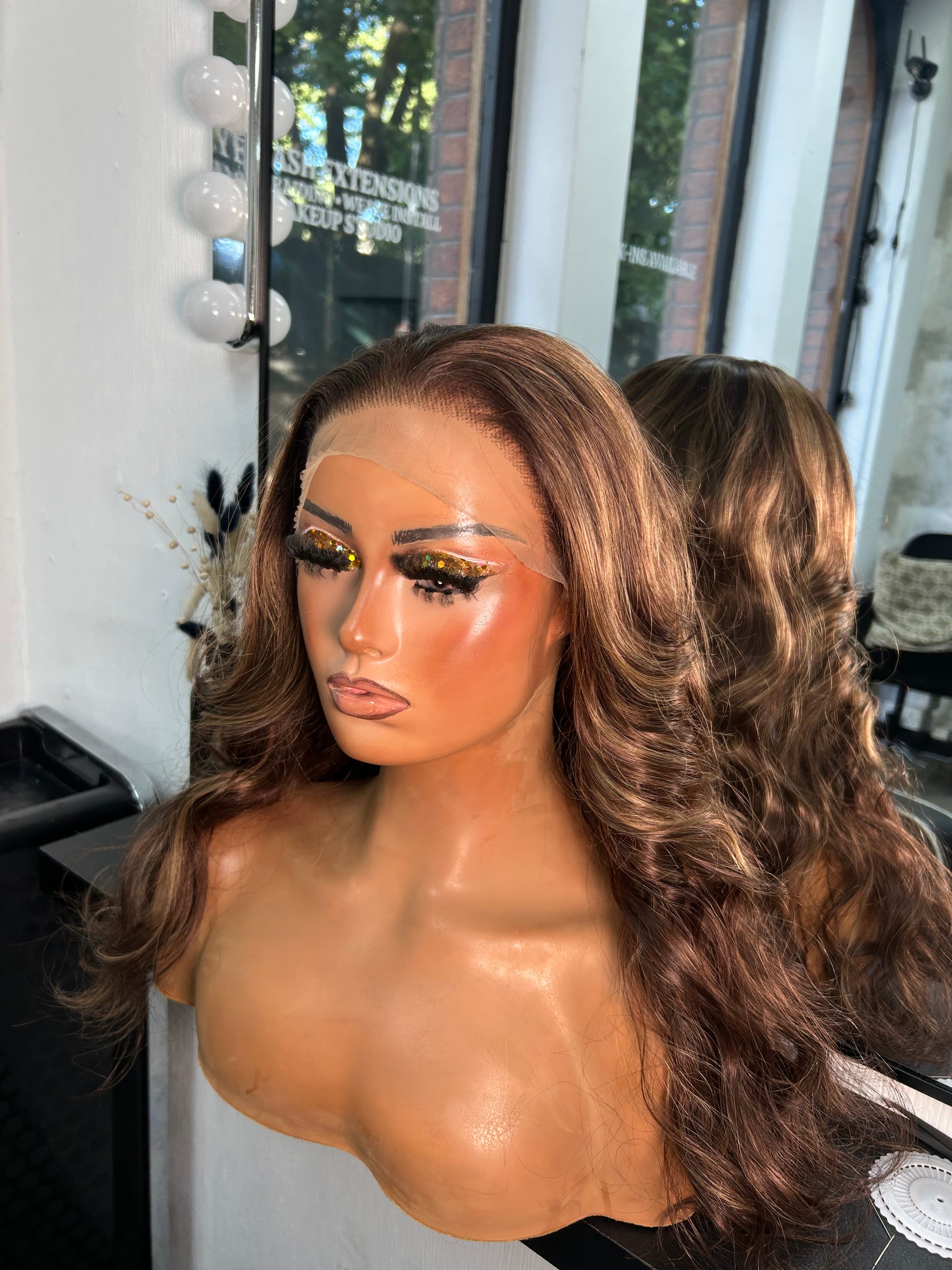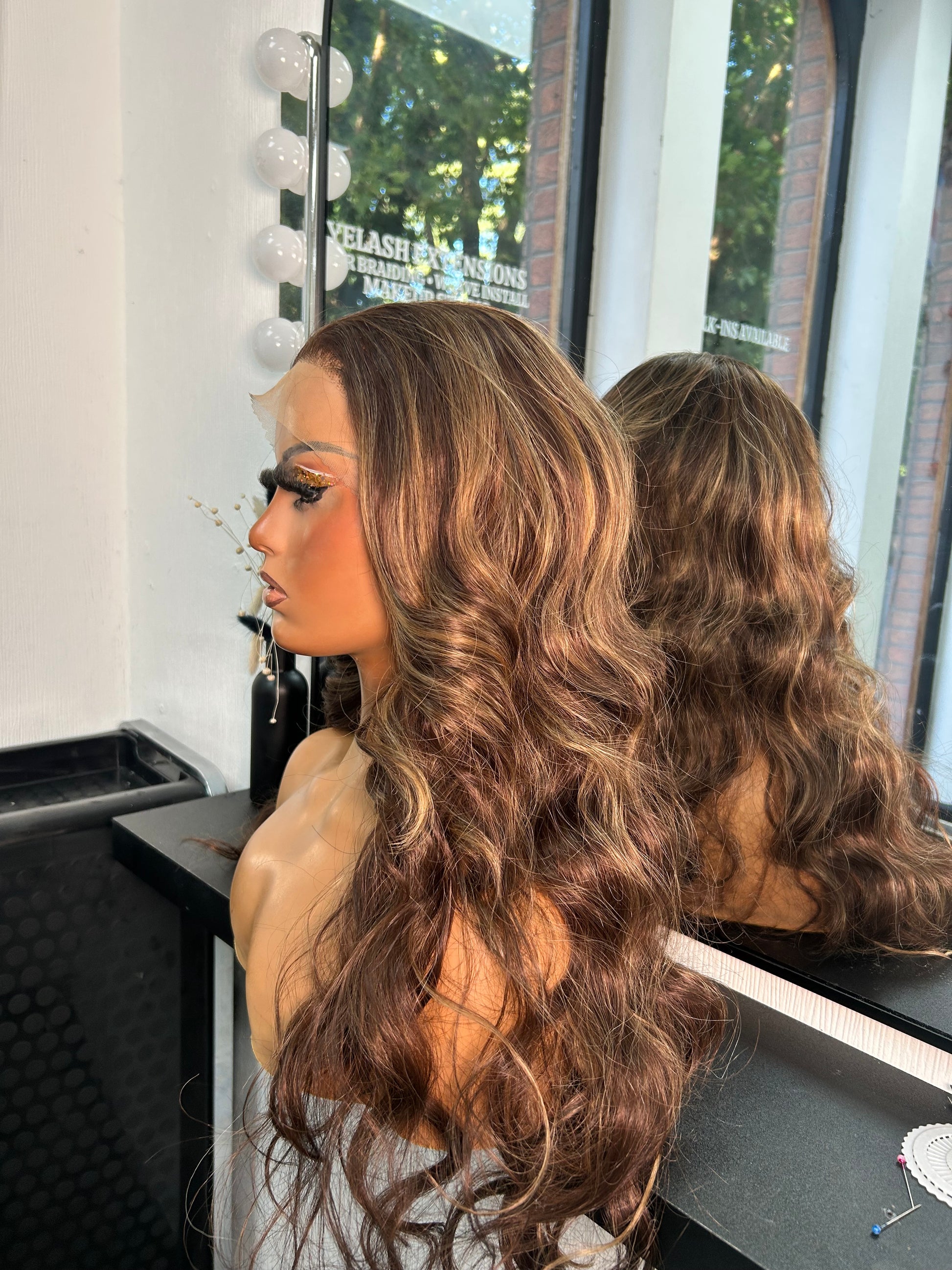 The Charlie 26" lace wig is perfect for those who want effortless, flowing waves with a hint of highlighted brown for added dimension. Made with a human hair blend, this wig features a body wave texture that bounces with every movement.