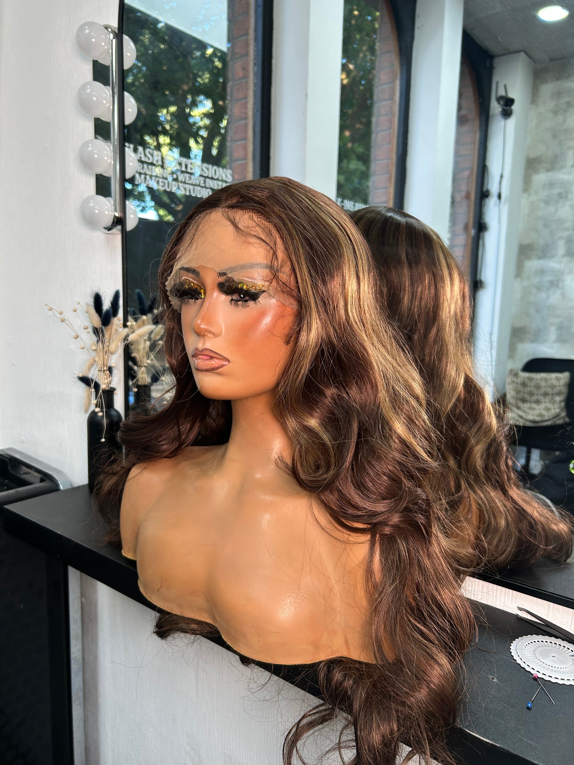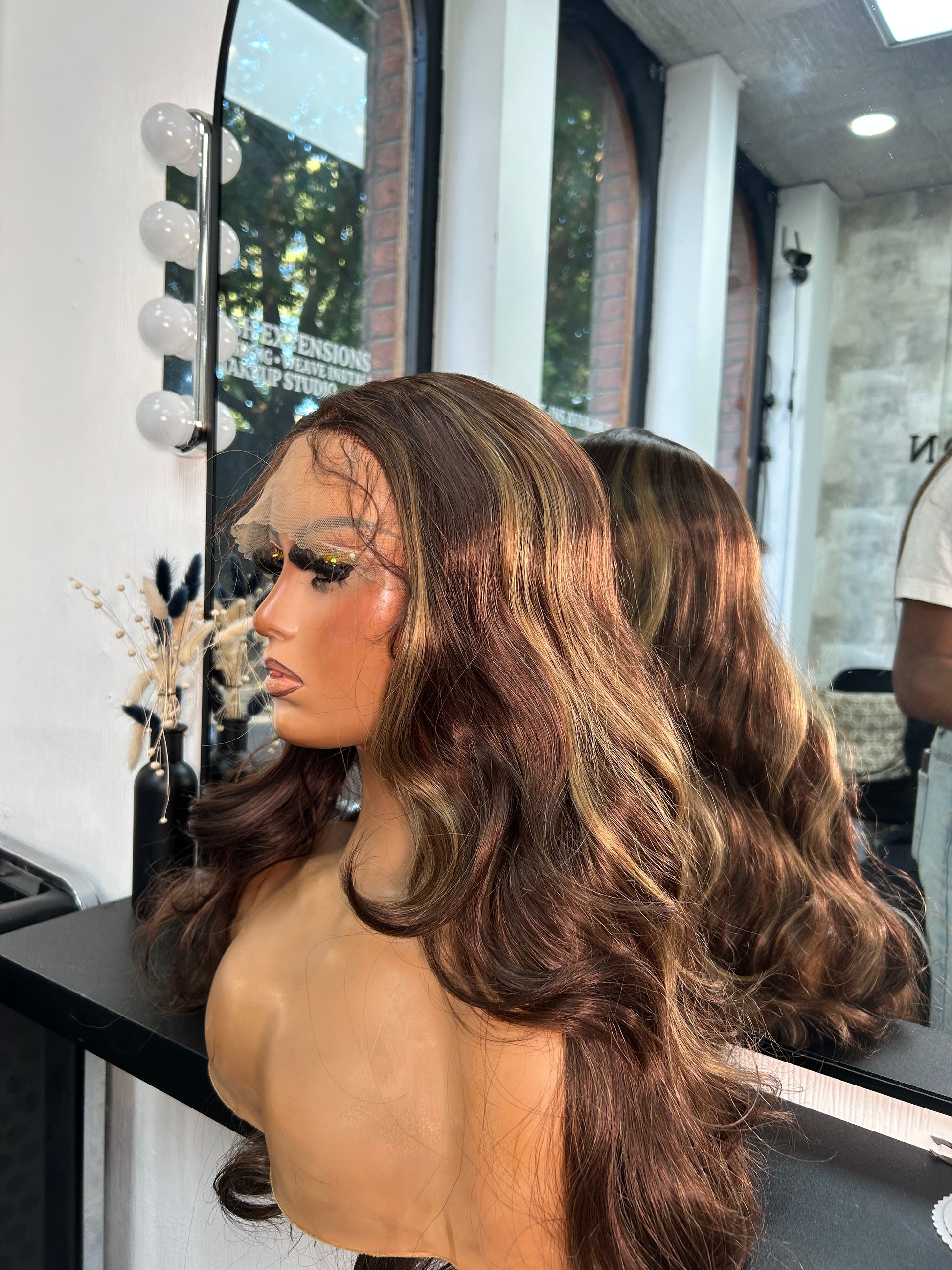 The Sarah 28" T-part wig is a stunning blend of highlighted synthetic fibers, creating a rich, multi-dimensional body wave look. With its easy-to-maintain synthetic hair, this wig offers a beautiful, voluminous style that lasts.