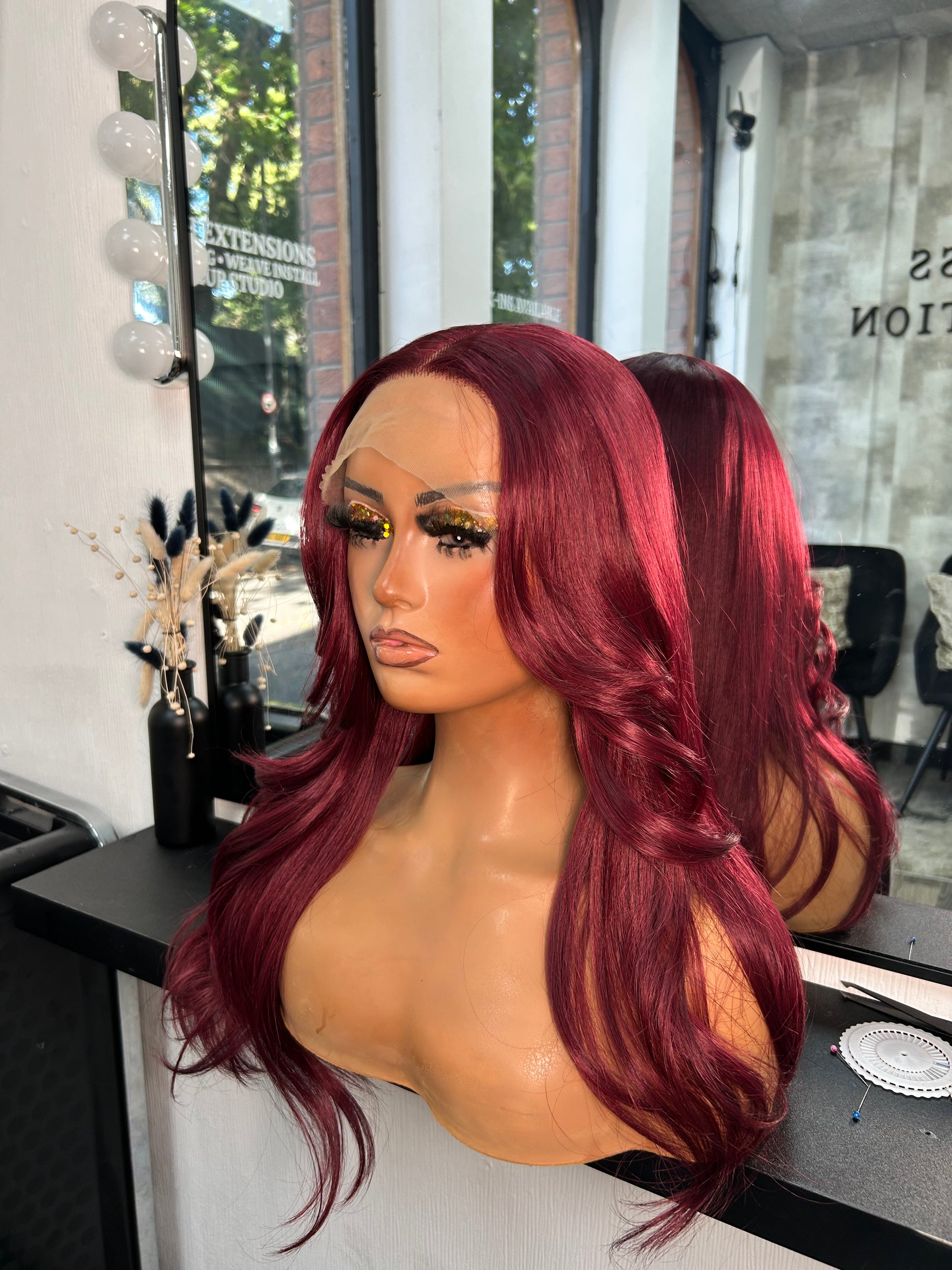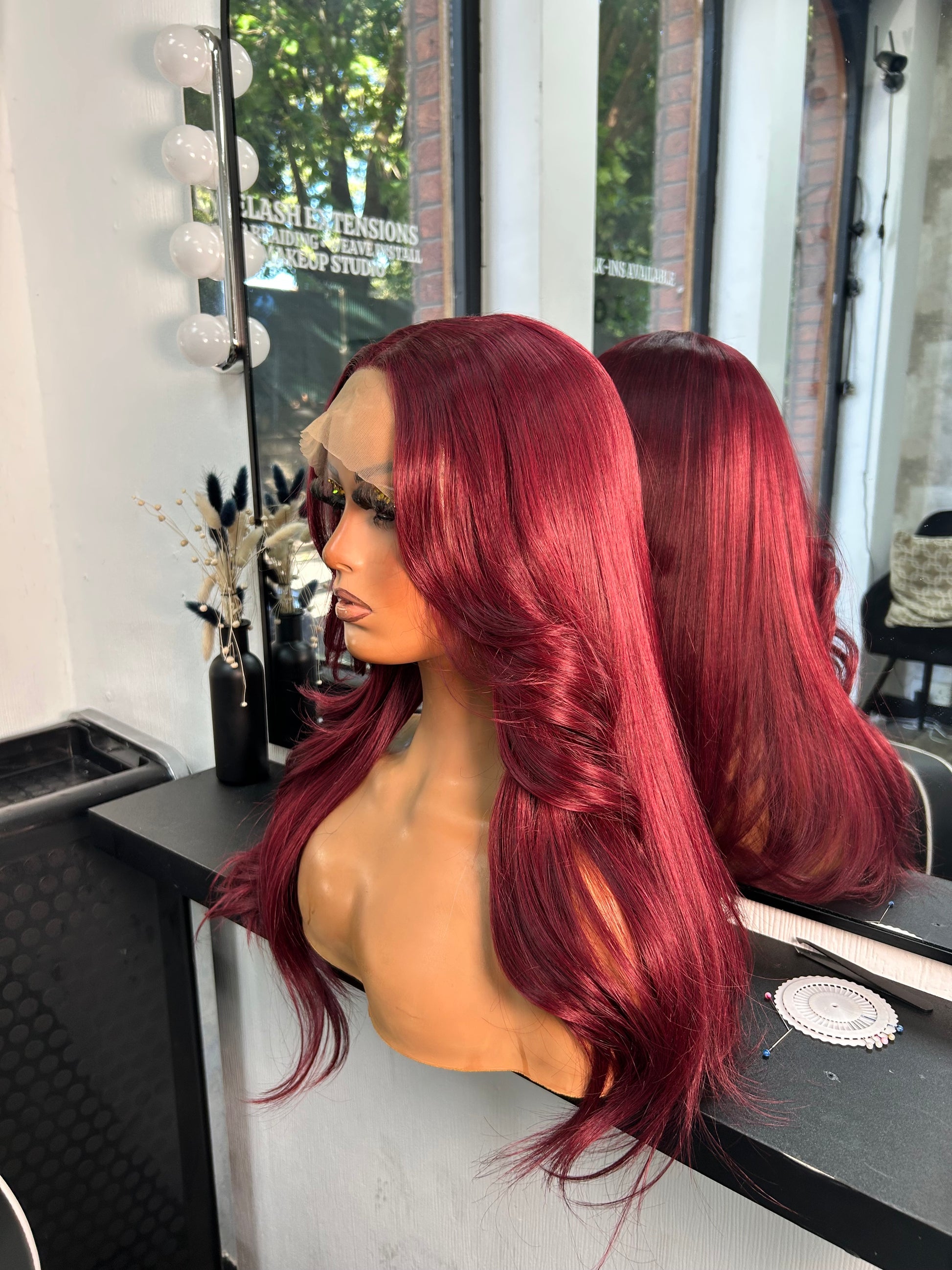 The Sharon 26" T-part wig in a striking 99J Burgundy color offers a stunning, rich hue that pops. With blowout styling, this synthetic wig provides a polished, full-bodied look that’s perfect for any occasion.
